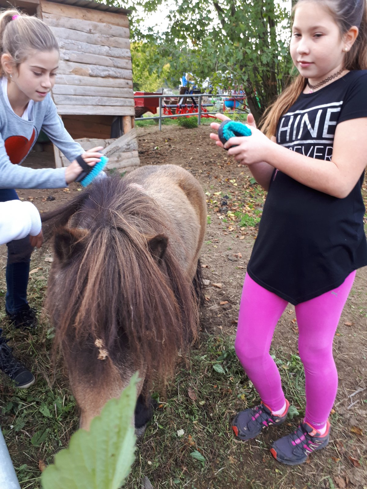 My, žáci 5. D, jsme se vypravili dne 16. 10. 2018 na Ekofarmu Pod Hvězdou. Přivítala nás milá paní, která s námi prošla celou farmou. Viděli jsme rozlehlý sad jabloní, hrušní, broskvoní, meruněk a švestek. Z jejich plodů tam vyrábějí mošty a marmelády. V létě si můžete přijít nasbírat jahody. Nejvíc nás však zaujala drobná domácí zvířata. Kachny, husy, králíci, krůty, perličky kuřata, slepice, kohouti a křepelky zde mají pěkné, čistě nastlané příbytky s výběhem po farmě. Pěkně vypasený vepřík s prasnicí si hlídá malé stádečko selátek. Na louce se pasou ovce a na vše dohlíží poník Šou a jeho kamarád pes Ineg. Prošli jsme celou farmou, kde je velký rybník s kapry nebo ve starých kořenech postýlky pro broučky
