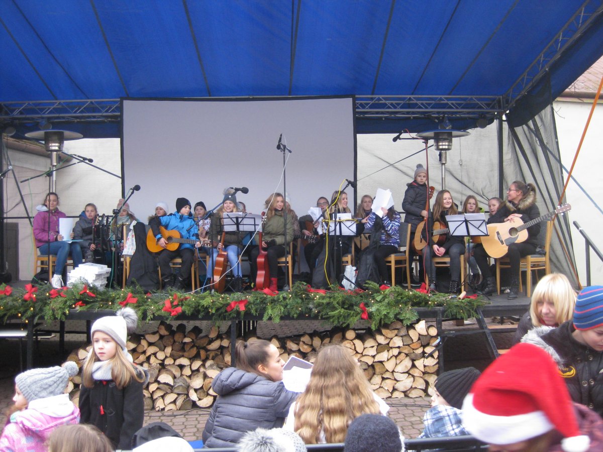Žáci a učitelé ZŠ Slovan přispěli k vytvoření této atmosféry nejen ve vlastní škole, ale i té celoměstské. V nádvoří kroměřížské radnice patřil našim dětem pátek 15. 12., kdy po celý den prodávali vánoční výrobky ve slovanském stánku. Chvíle naplněné pohodou pak návštěvníkům zpříjemnili mladí umělci a hudebníci ze školního klubu dvěma krásnými komponovanými vystoupeními.